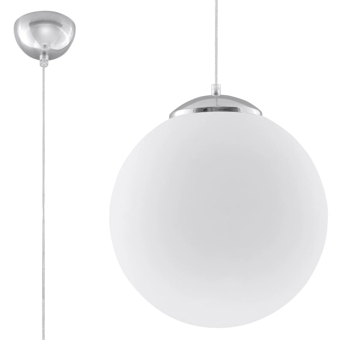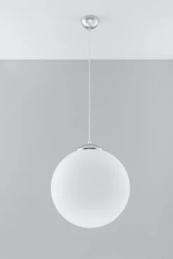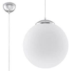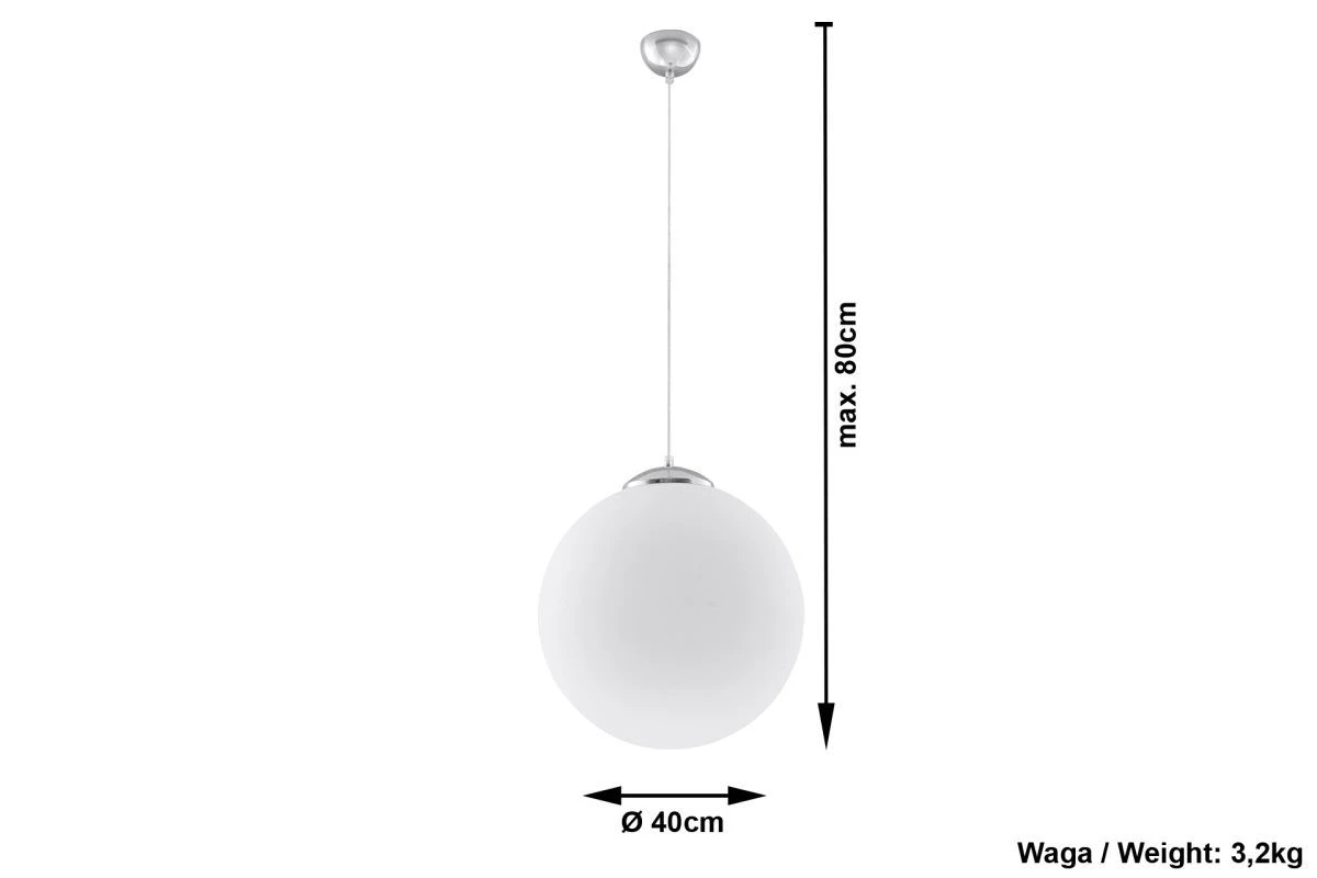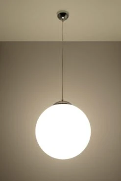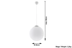 Mit der Hängelampe UGO aus einer weißen Glaskugel umit 40cm Durchmesser ist es wieder einmal gelungen im modernen Wohnbereich ein Zeichen zu setzen. Durch den Glaskörper der durch eine Chromeinfassung gehalten wird kann das Licht gleichmäßig im Raum verteilen. Die Lichtstärke ist,da dimmbar, individuell einstellbar. Eine E27 Fassung macht die Auswahl der Lichtquelle leicht. Dadurch scheinen die Einsatzmöglichkeiten unbegrenzt. Die Höhe bzw. Tiefe der Hängelampe lässt sich durch unterschiedliche Aufhängung einstellen. zur Ergänzung gibt es verschiedene Größen der Glaskörper.
