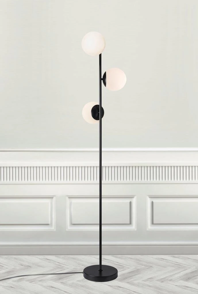 Bestücken Sie die drei Schirme mit einem Durchmesser von 150mm mit je einem geeigneten E14 Leuchtmittel. Da diese nicht im Lieferumfang mitinbegriffen sind, eröffnet sich Ihnen die Möglichkeit einer eigenen Komposition. Bedienen können Sie die 1500mm hohe Stehlampe über einen Fußtrittschalter am 1500mm langen schwarzen Kabel.