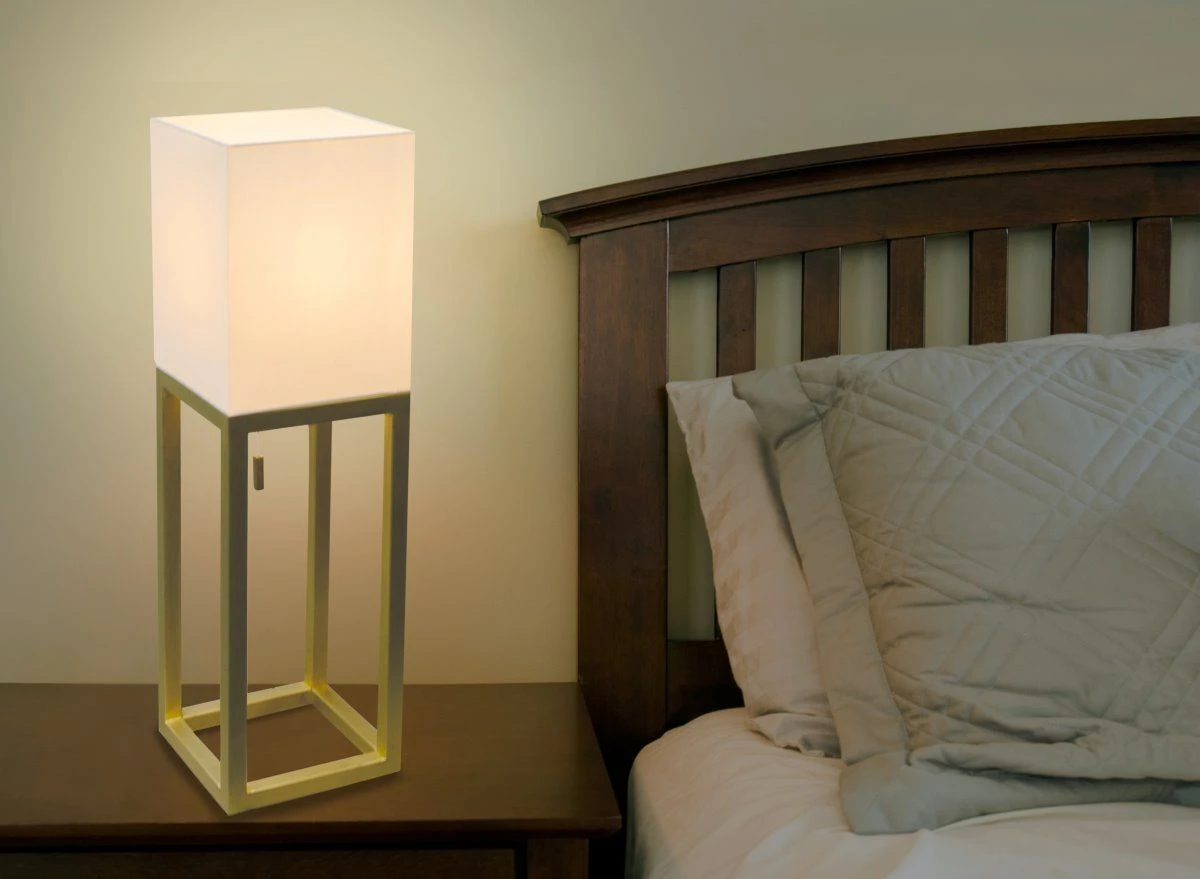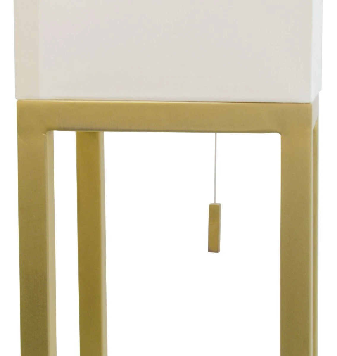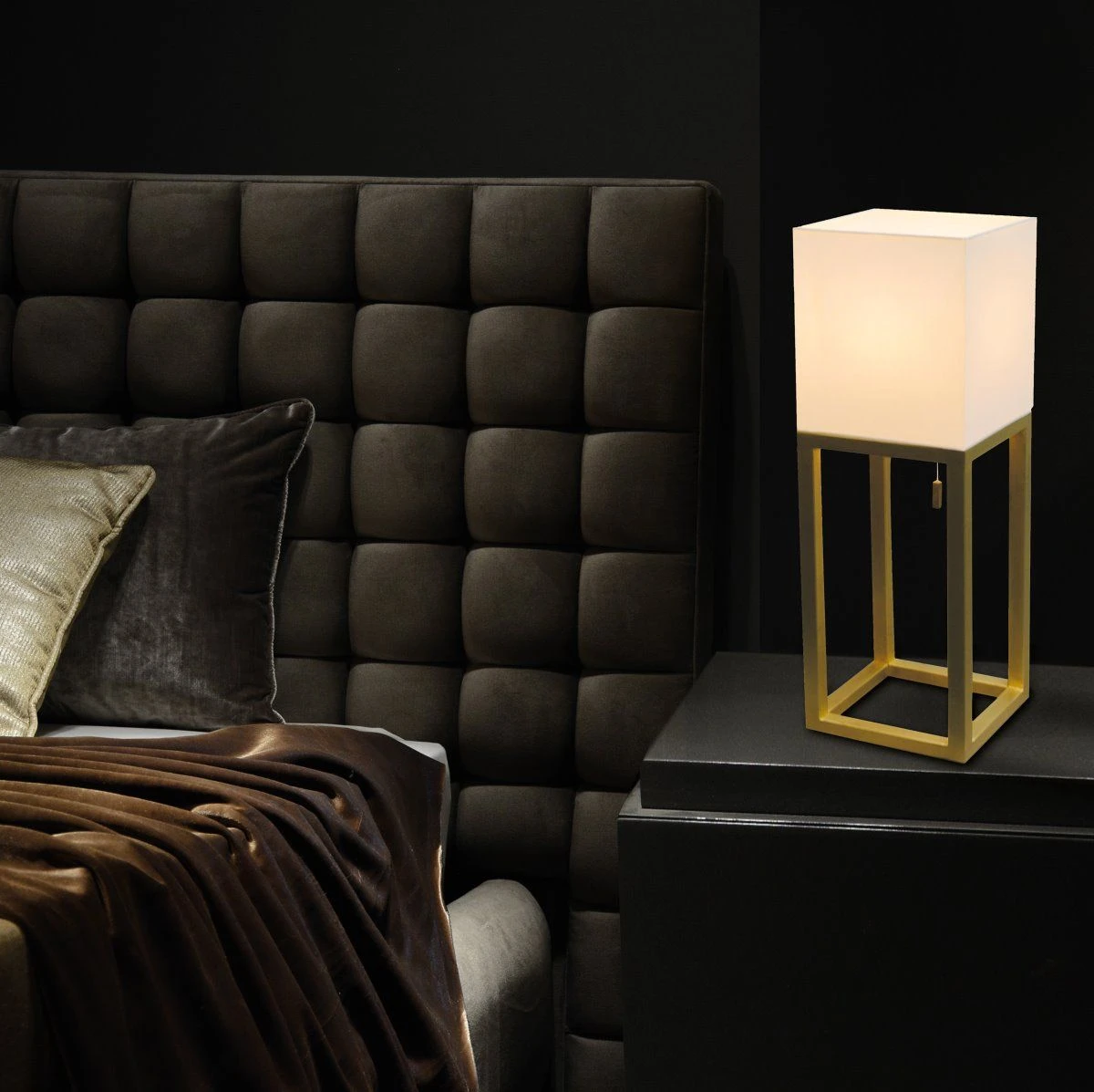 Die rechteckige Tischleuchte Alfa mit einer Höhe von 650mm aus der Home Lights Kollektion von Näve Leuchten fasziniert mit einem schlichten aber modernen Designkonzept aus messing-mattem Metall und einem weißem Stoffschirm. Ihre zeitlose Optik und die perfekt kombinierte Farbgebung, sorgen dafür das sich die Tischleuchte perfekt in Ihre Wohnräume integriert und diese in einem angenehm-trendigen Licht erstrahlen lässt.